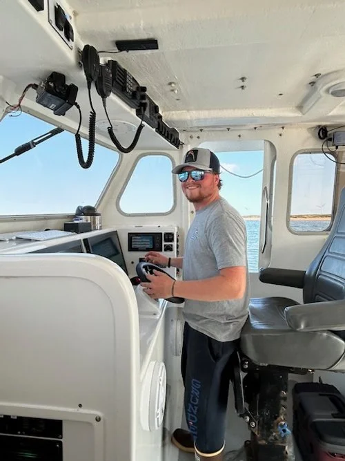 Tyler has been First Mate aboard the Harvest Moon for the last four years. Troy Bruce is his father-in-law and Tyler started Bluefin Tuna and Lobster fishing in 2016. He has always been an avid fisherman his whole life. He enjoys trying flies and targeting large trout and stripped bass in his spare time. After you’ve gotten your fill of GBFT with us, talk to Tyler about heading to the beach for some bass fishing later!